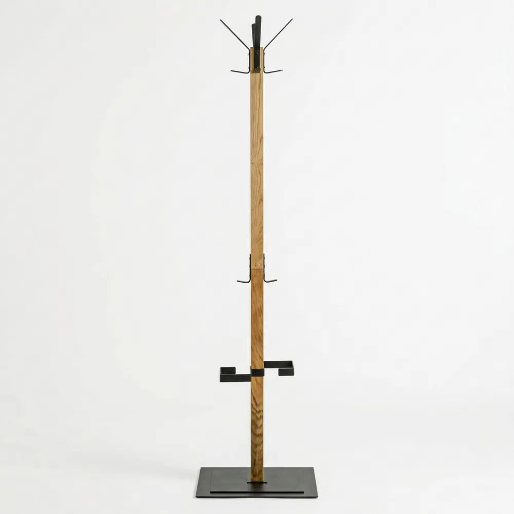 Moderner Standgarderobenständer aus Eiche und Metall, Schwarz, 40 x 180 x 40 cm