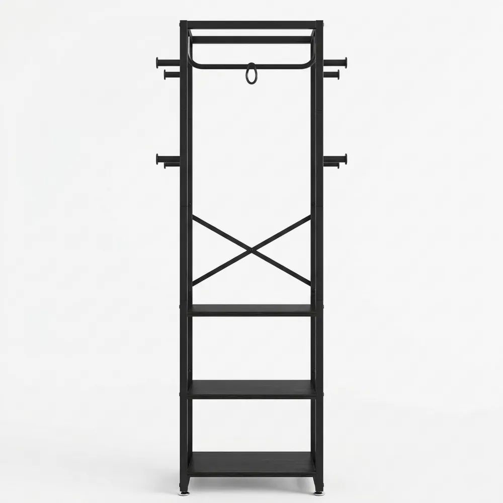 Garderobenständer mit Ablagen und Haken für Wohnräume, 180 x 40 x 30 cm, Schwarz