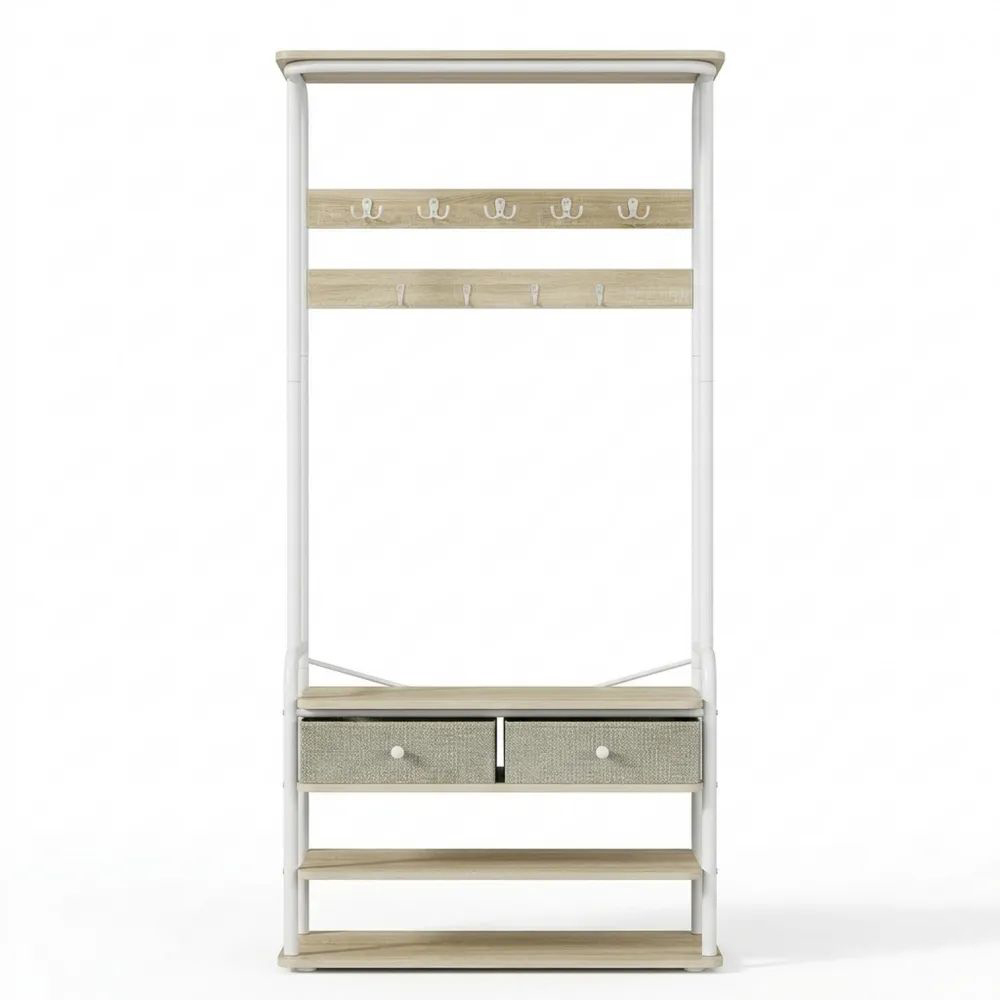 Freistehender Garderobenständer mit Schuhregal und Stoffschubladen, 9 Haken, Eichenfarben