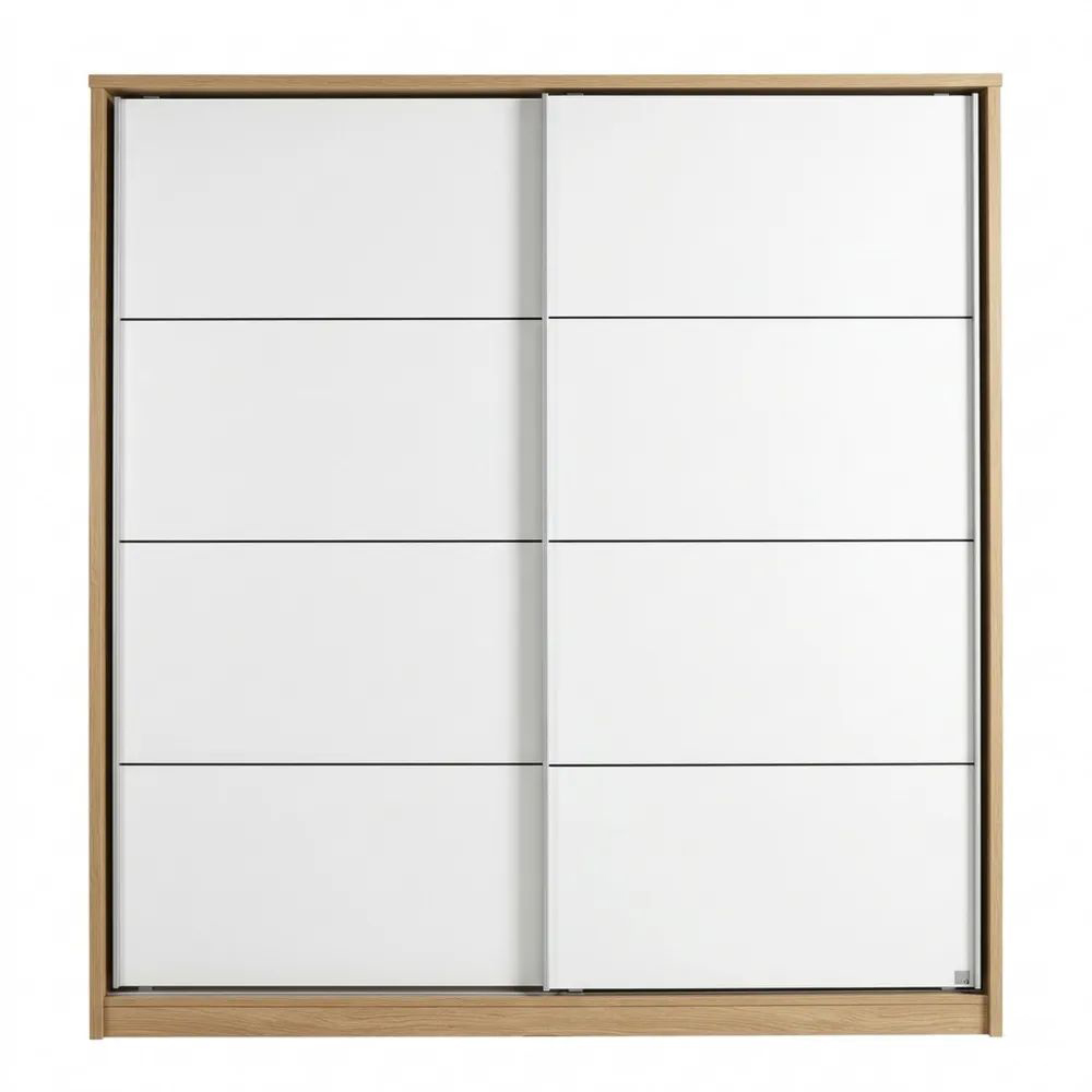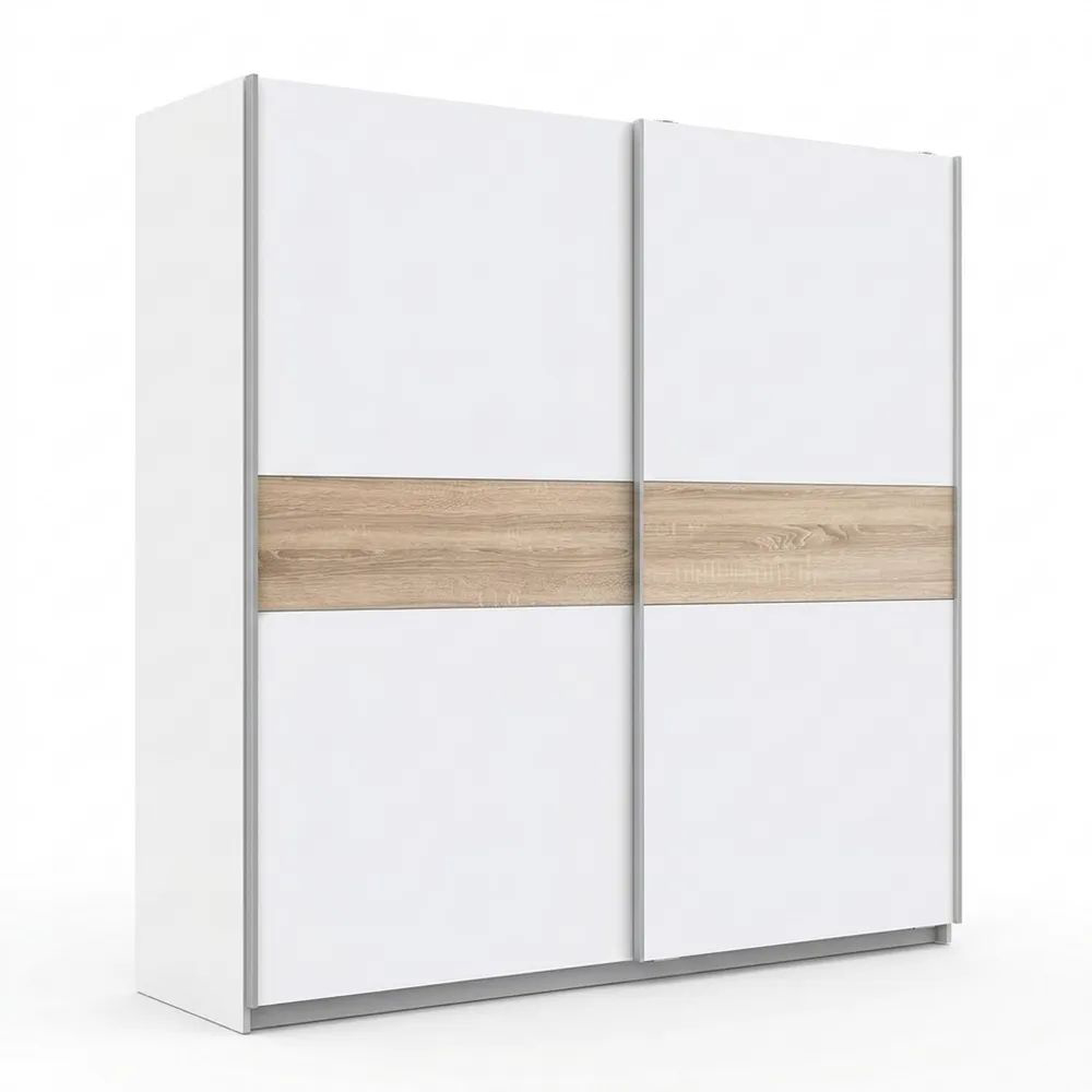 Zweiflügeliger Garderobenschrank mit Schiebetüren, Eiche Sonoma/Weiß, mit Zubehör
