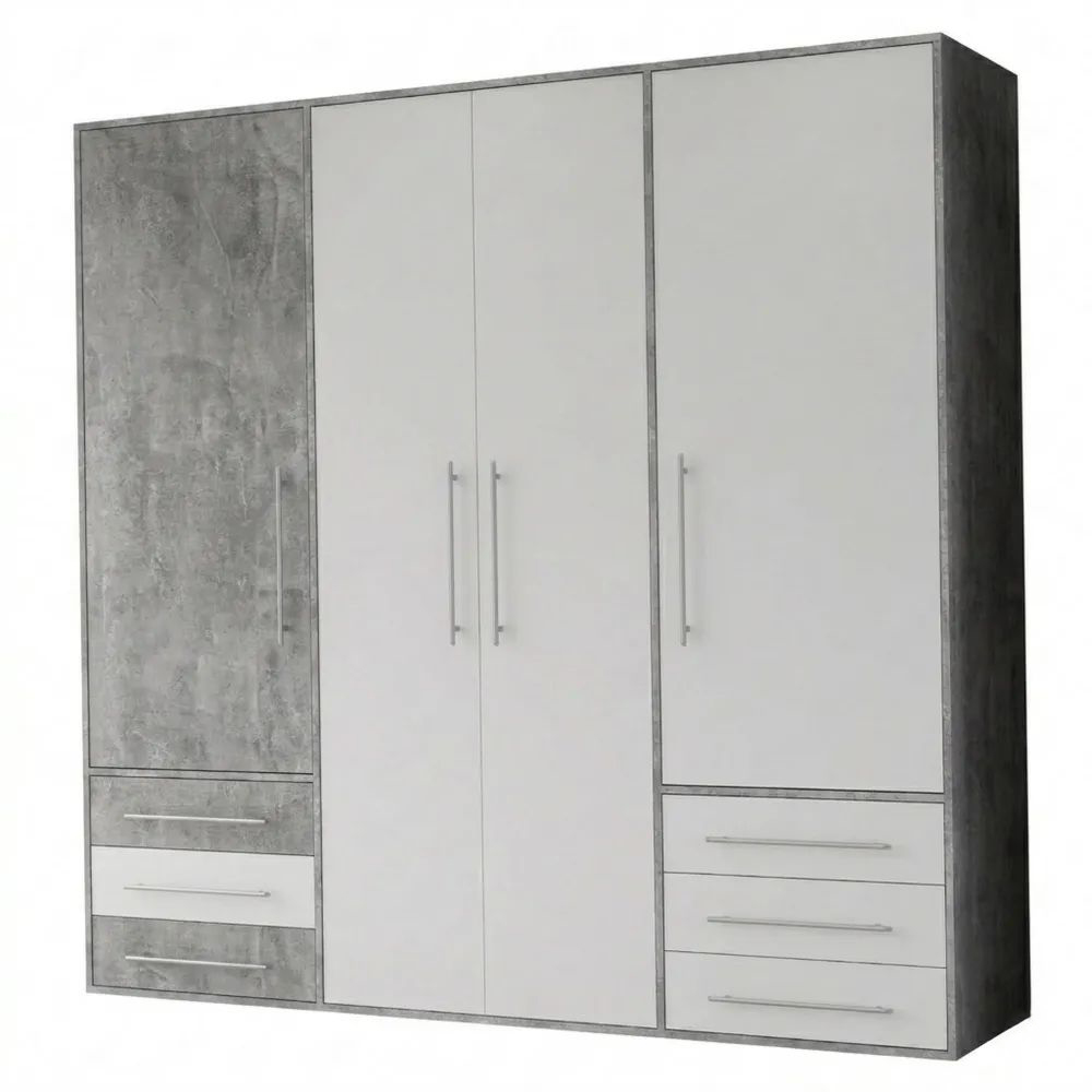 Großer Kleiderschrank mit 4 Türen und 6 Schubladen, Holzoptik Weiß/Lichtgrau, 205,9 cm breit